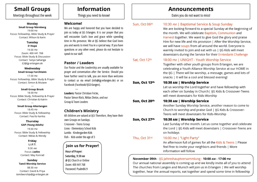 Oktober 2024 Newsletter | Wichtige Termine und Informationen